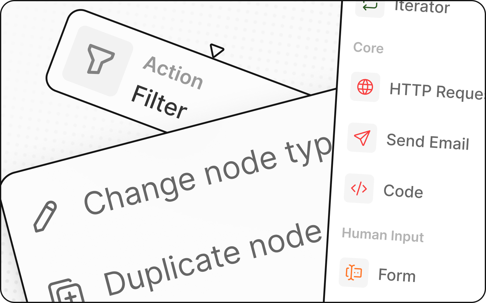 You now have the ability to duplicate nodes, change node types, and use a streamlined filter design in your workflows.